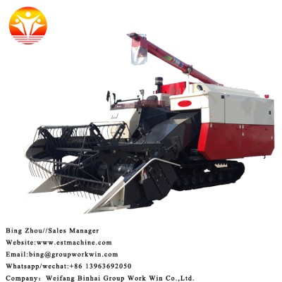 A Harvester. It's an integrated harvesting machine. Once harvested, threshed, and concentrated the grains into storage tanks, the grain was then transported through the conveyor belt to the transport vehicle.Artificial harvesting can also be used to spread the stalks of rice, wheat, and other crops in the field, and then use grain harvesting machinery to collect and threshing is a crop harvesting machine for harvesting grains and stalks of rice and wheat crops.
