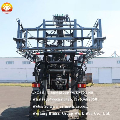 2: the wheels space and the spray rod is adjustable , it can adjust accordiong to the height of the different crops . the wheels distance is between 2.3-3 meters and the spray rod height can adjust in 0.5 -1.8 meters , we also can make it as customer requiment .