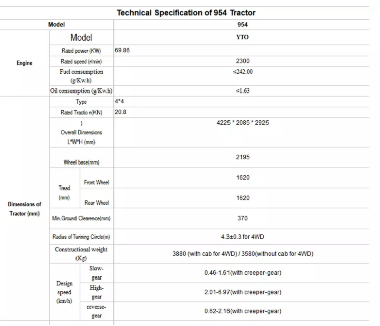 1. YTO diesel engine: good reliability, large reserves of torque, low fuel consumption, high economic efficiency.