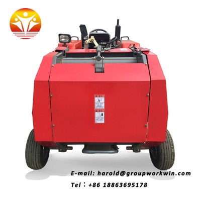 The straw bundling rope coiling machine consists of main machine, pick-up part, compress rolls, automatic binding hay bales, hydraulic pressure ejection system, three point linkage etc. It can move and work with a 15-90 HP tractor by PTO shaft. Automatic operate: led rope, pick up wheat straw hood, bundle , cut twine automatically, can cut through the tank round the size of the adjustment, to come loose, not messy.